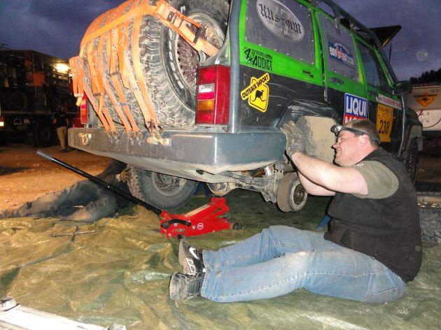It was raining lightly when we arrived, and the team had already set up camp and was waiting for us (and the tools in the truck) to service the cars. It had been a warmup day. There were four specials, but the course had been fast and not too demanding, so nothing was broken and most of the maintenance was routine.
