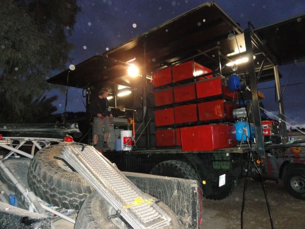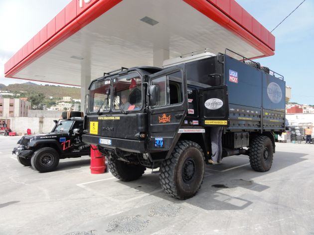 We didn’t get any onboard video from the Protruck, because we accidentally left the camera on after we transferred the video from the SD card while we were waiting in Alméria, and the battery was dead.