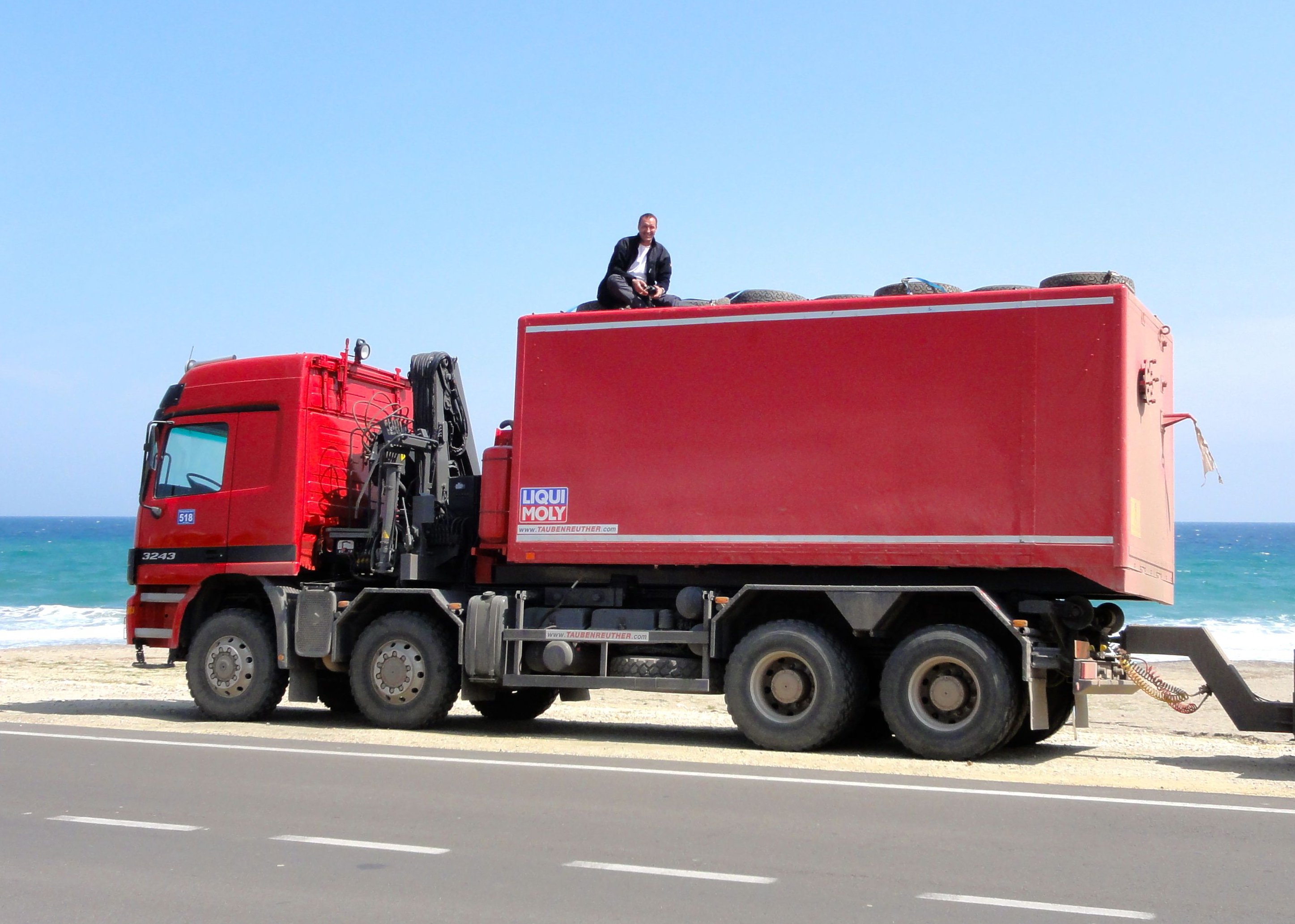 When Stéphane called at 7:30 on Saturday morning, we were just 10 minutes away from the ferry station. They’d already debarked and were waiting for us in a parking area near the entrance so that Edouard could check over the Protruck before they headed out for the 110 km run to the Finish in Mojácar.