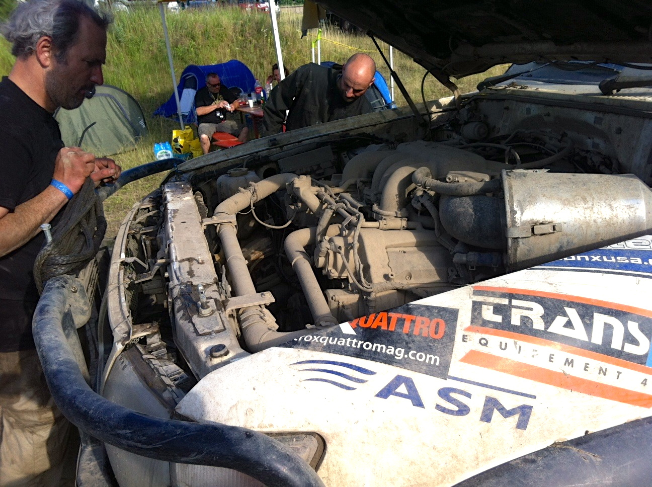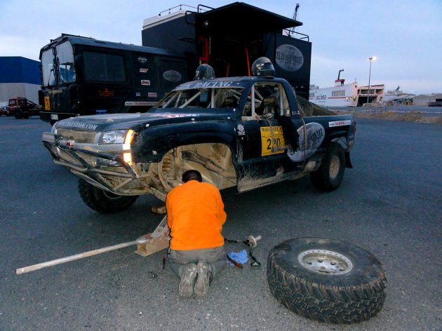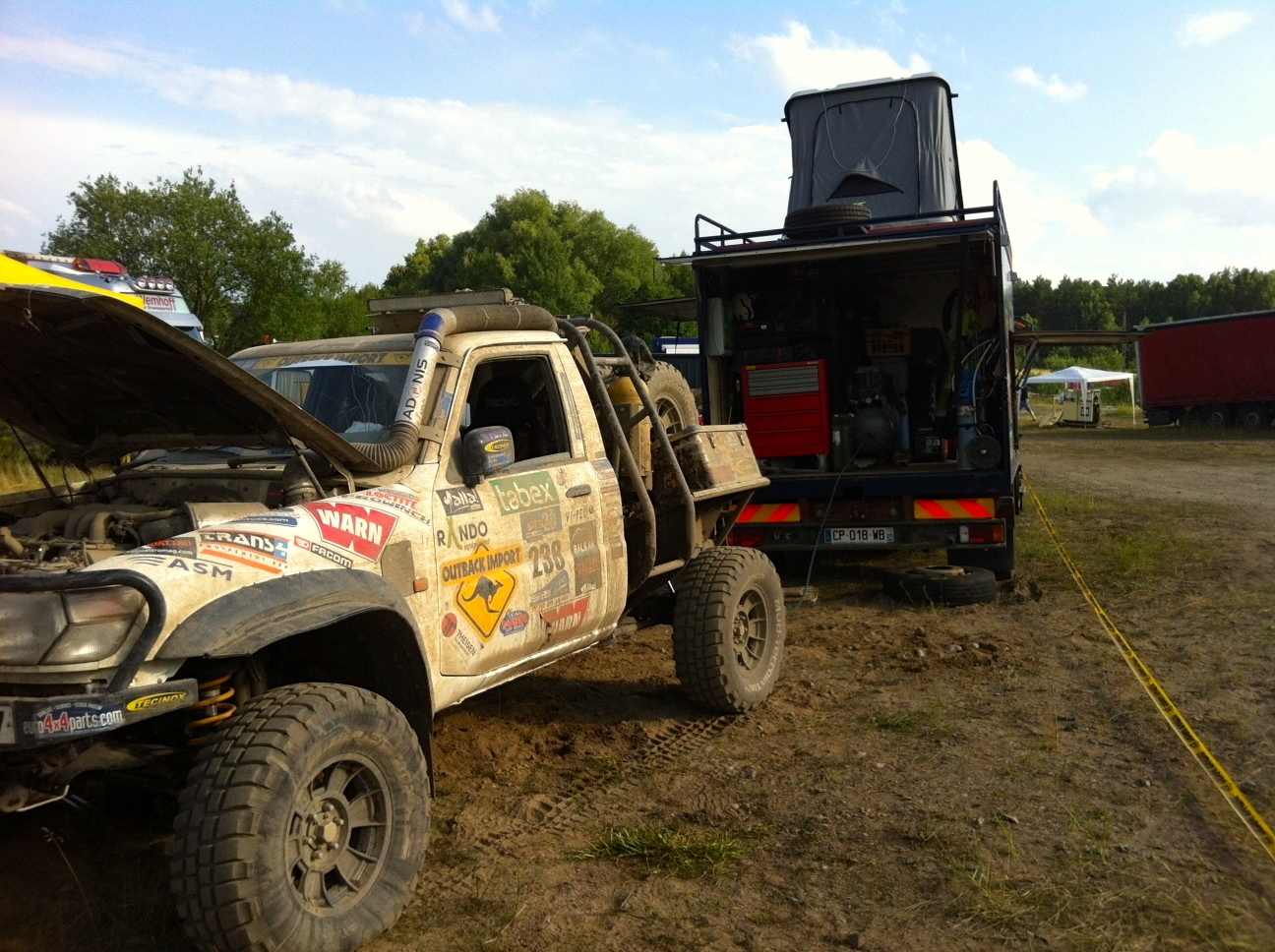The mechanics still have a few hours of work to go, but everything should be ready in the morning. Tomorrow’s special is 205 km, and should be fast although there is another big water crossing. The Orga says it is too deep for the motorcycles and quads, but due to all the recent rain, it may also be too deep for the cars and trucks.