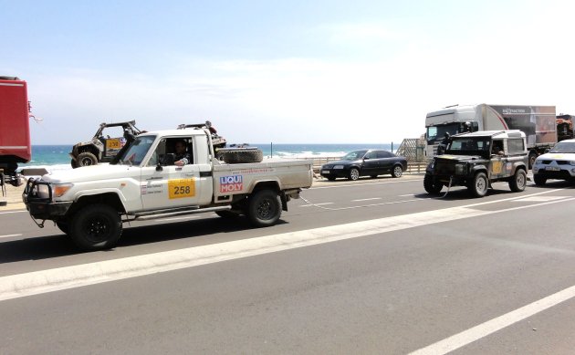 We watched from across the street as all the competitors passed, a few cars being towed by fellow participants.