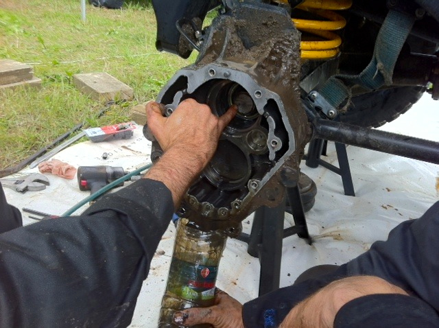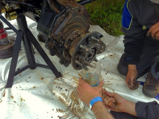 However, the replacement axle is a different one, so the gear ratio is not the same as the front axle and the differential needs to be changed as well. The mechanics still have a few hours of work to do before the car is ready to go again.