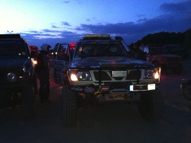 Here are our guys, Sylvain and Gaby, in their Nissan Patrol V8 (car on the right),