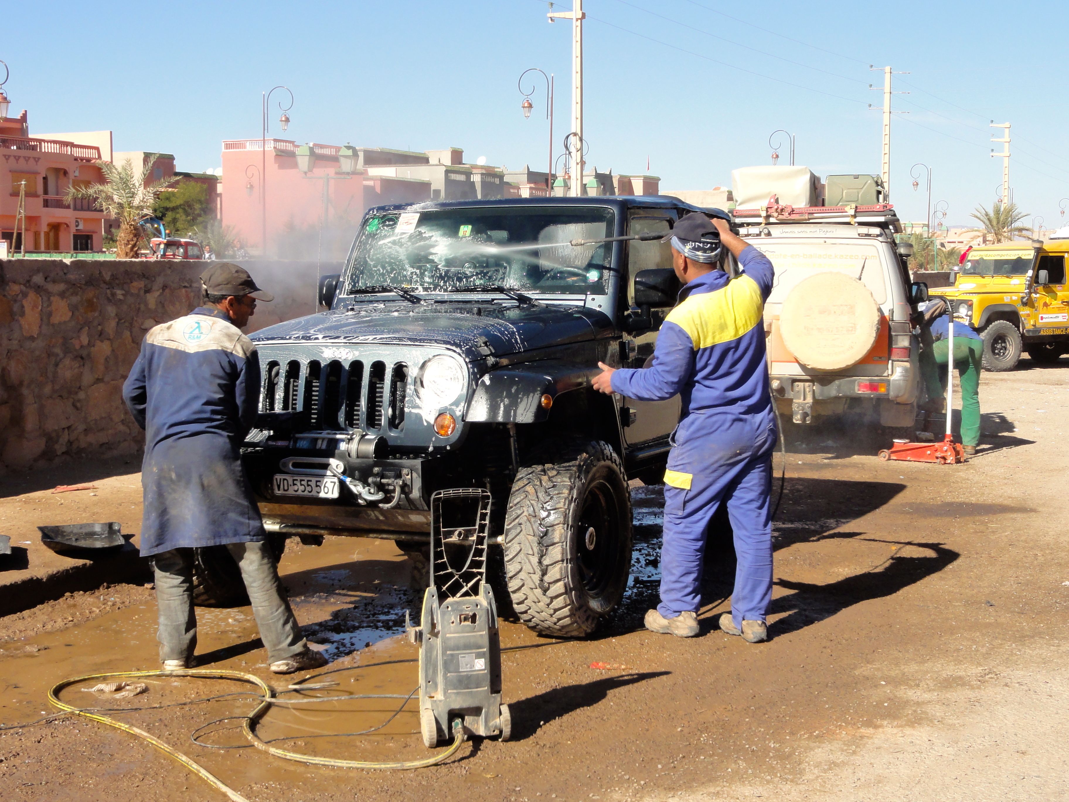 Once we were safely on the other side, we decided to stop for lunch at the auberge. Under a clear blue sky we shared the most delicious omelette Berbère in a setting as stunning as a tropical paradise in any tourist brochure. We talked a little with some locals and gave a man a lift to a nearby village in exchange for guiding us through the passable section of a muddy riverbed farther west. Several other tourists in 4×4’s took advantage of the opportunity to follow us through. The rest of the afternoon was uneventful.