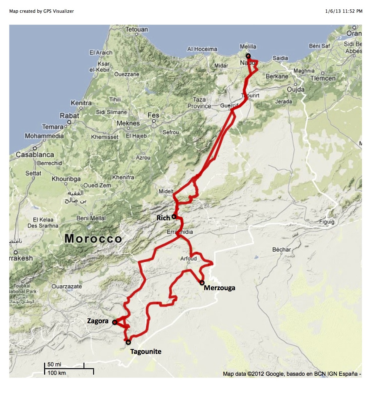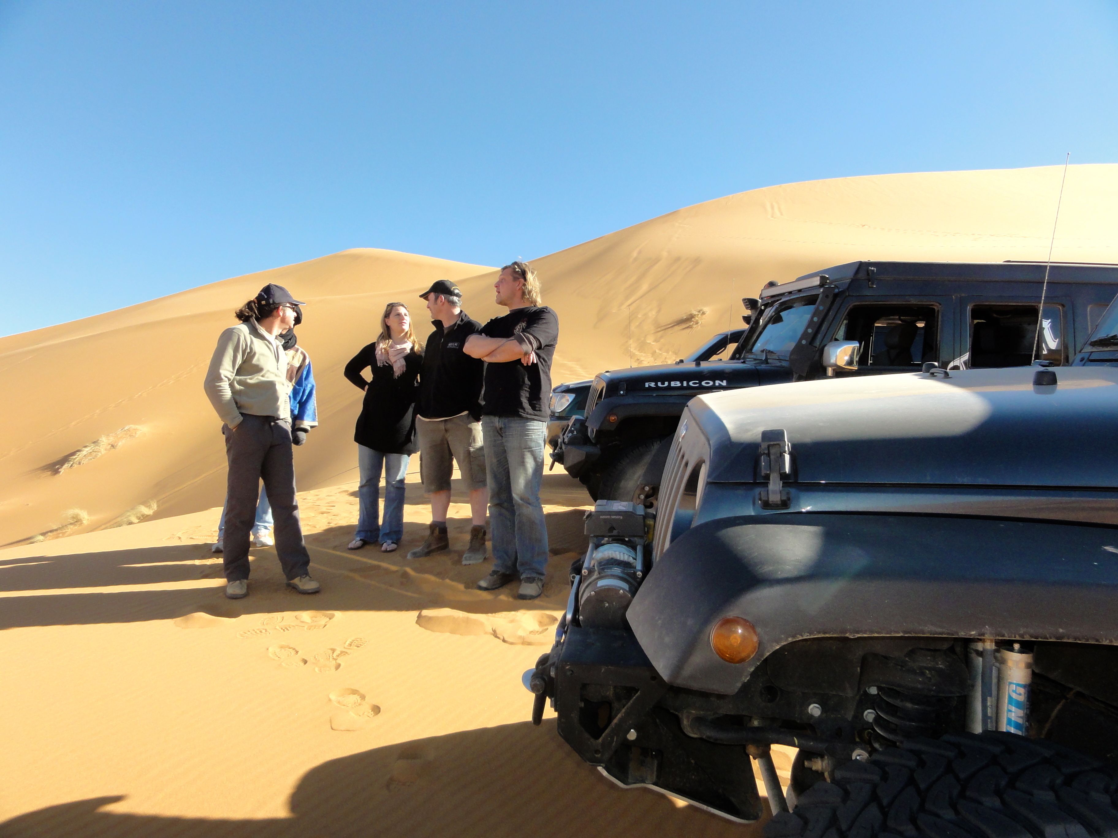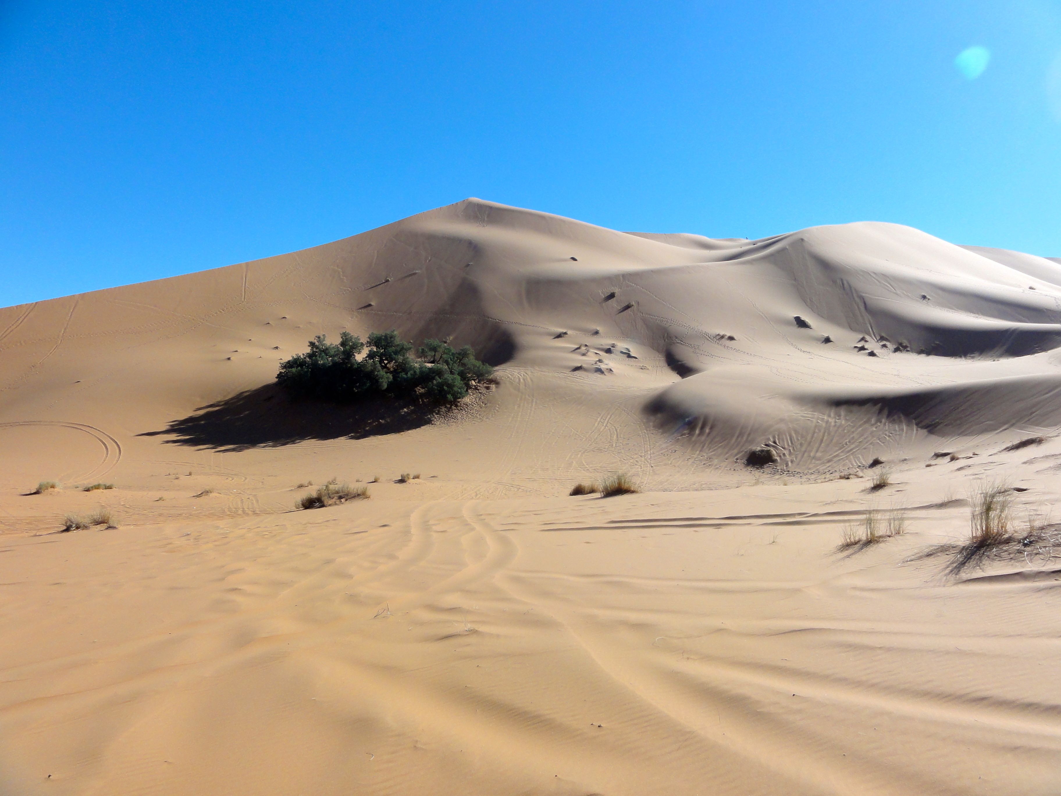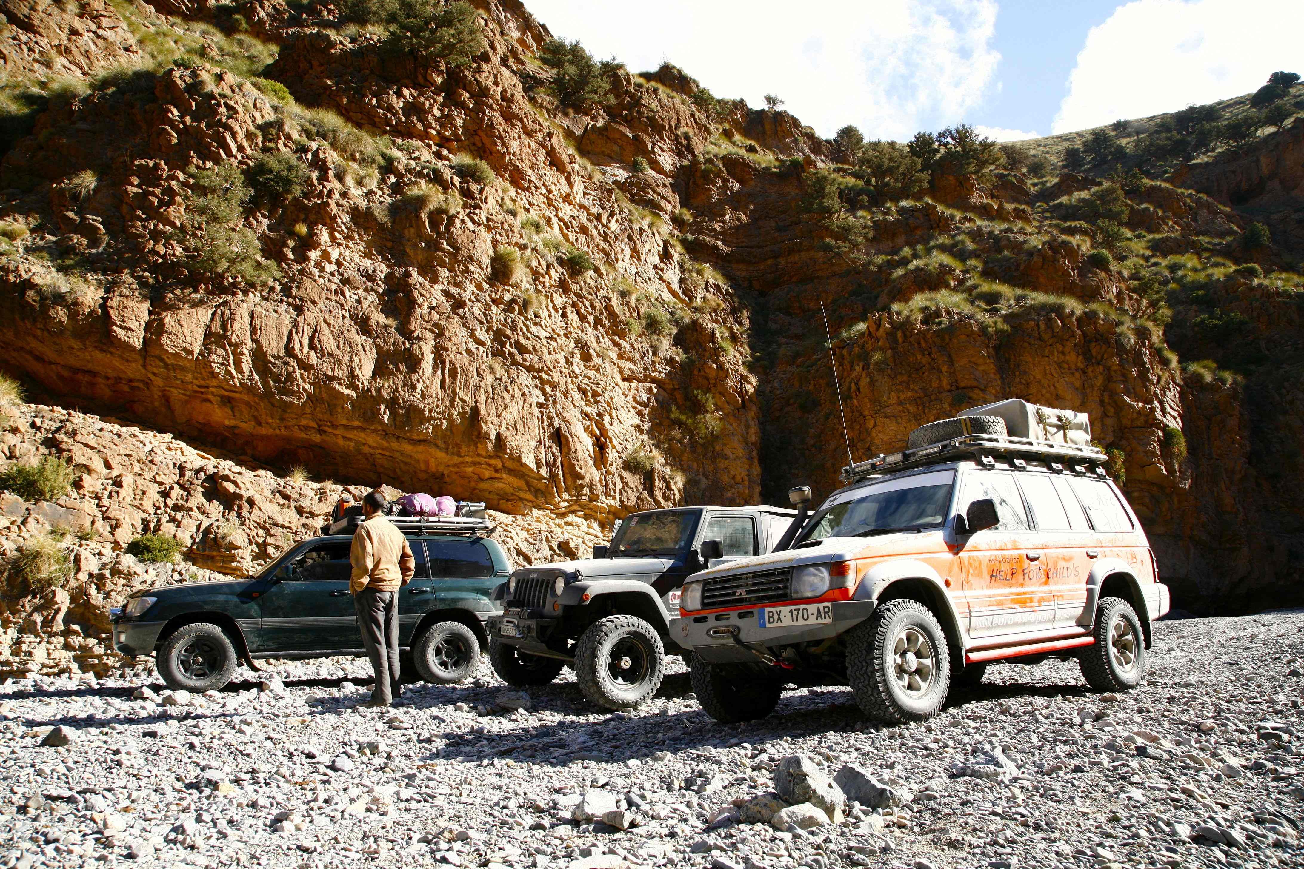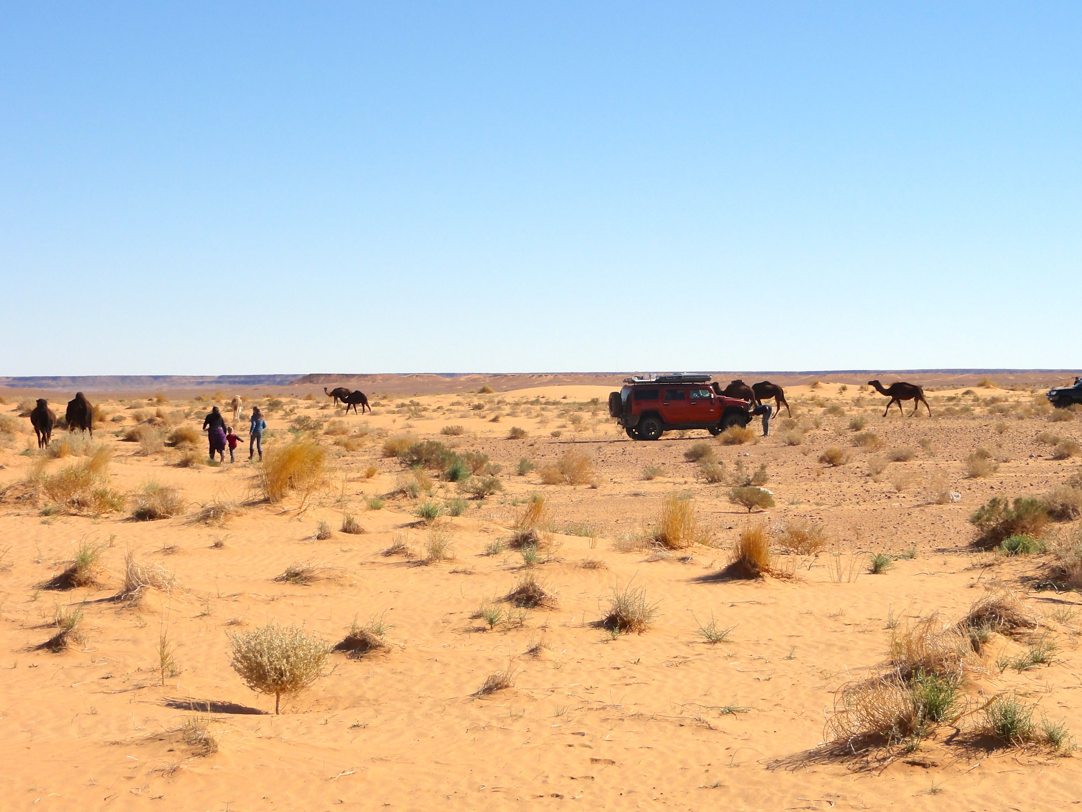A week ago when we stopped at dark to make camp in the Oued Rheris, we were in a different world. The labyrinth of scrub trees that effectively stymied us after nightfall proved much less difficult with a visual point of reference that came with the golden light of morning.