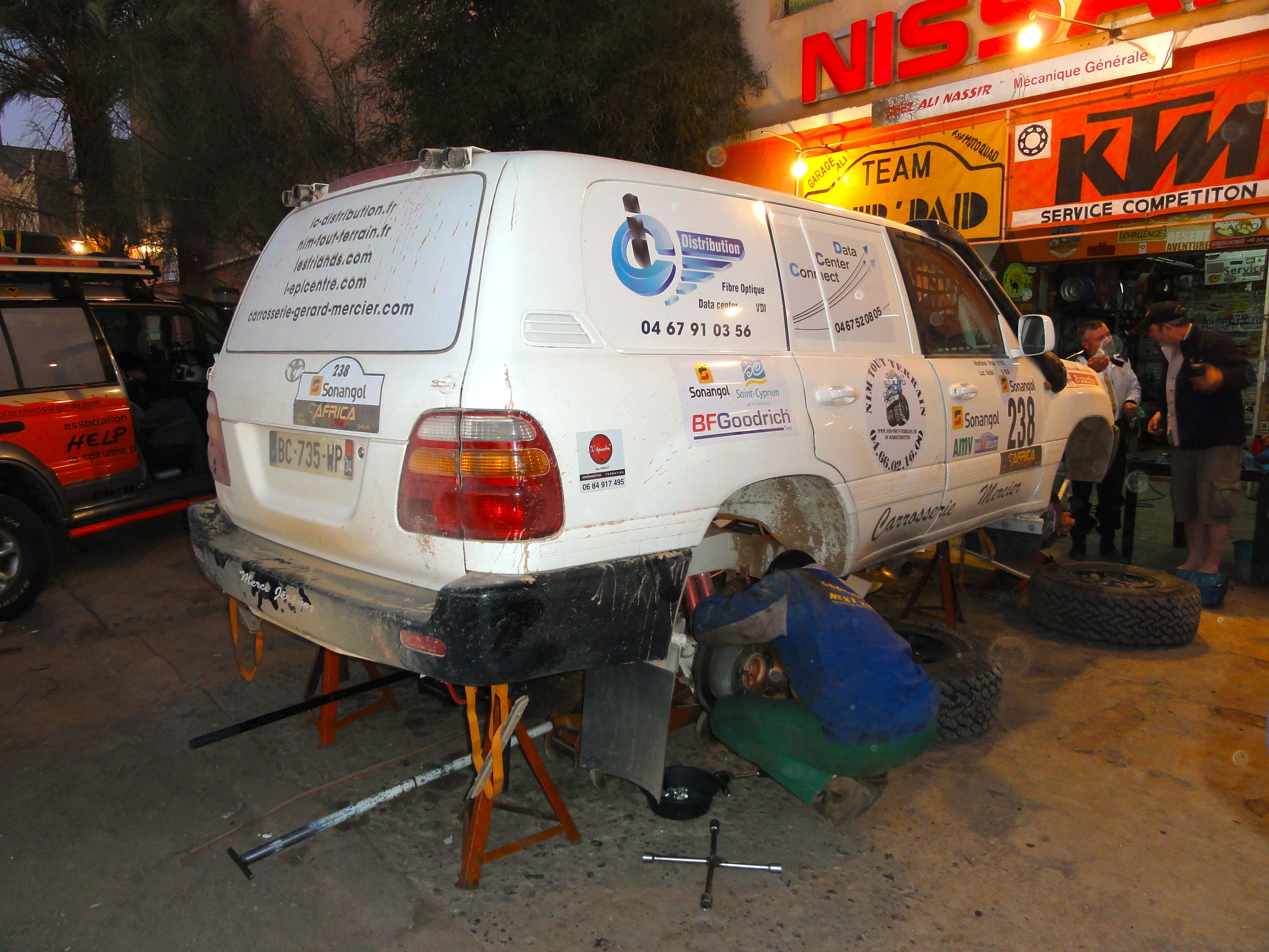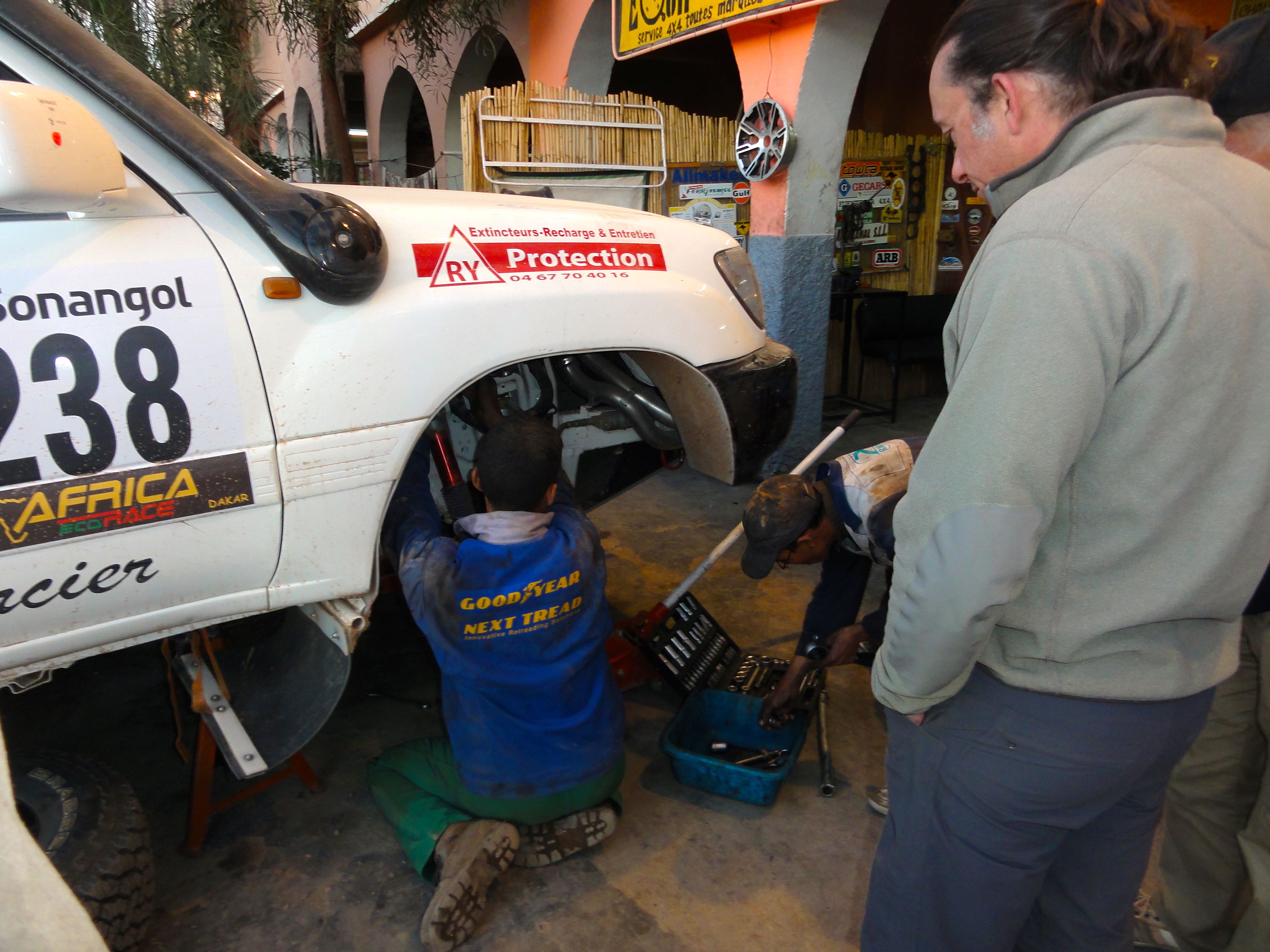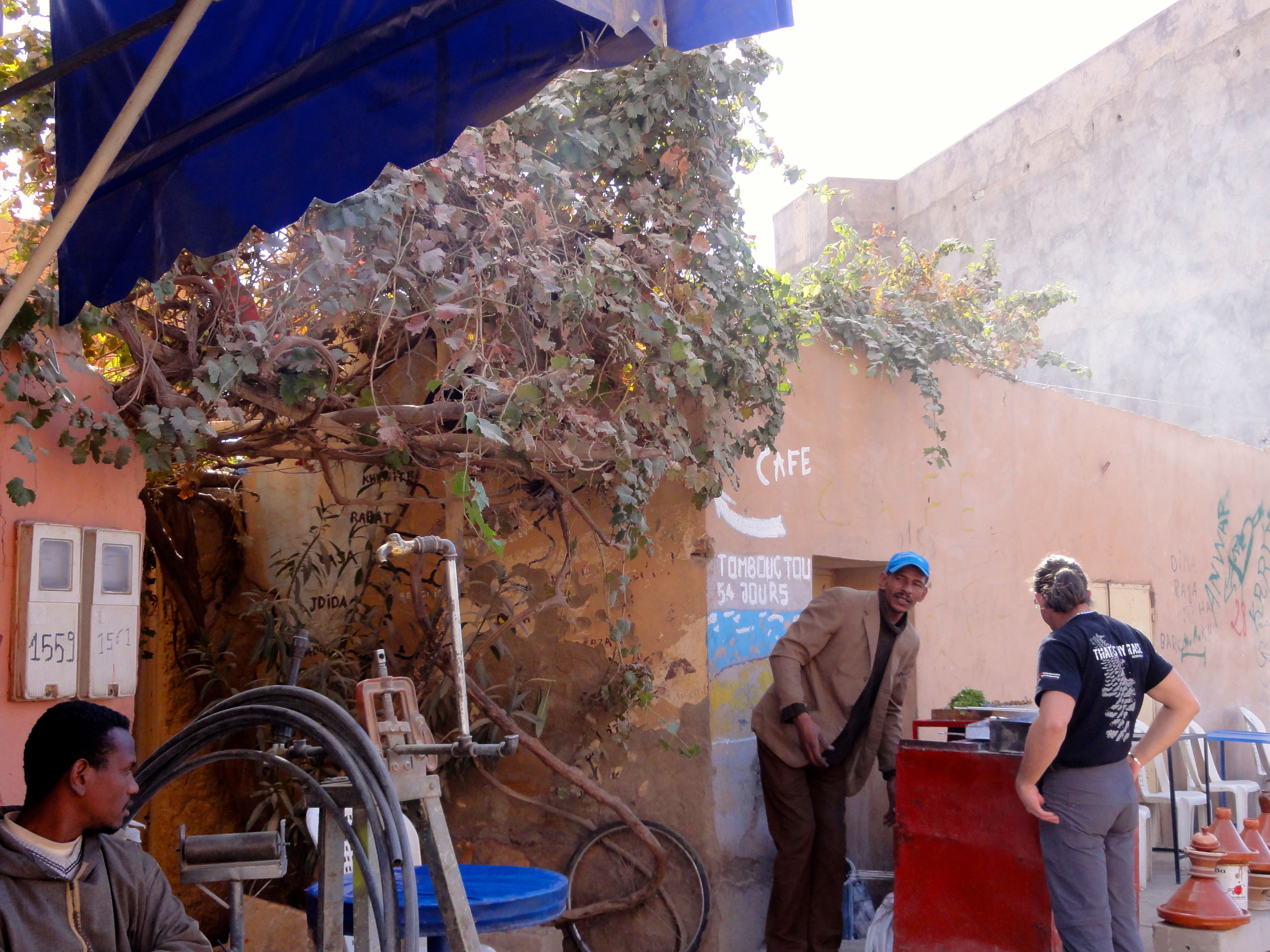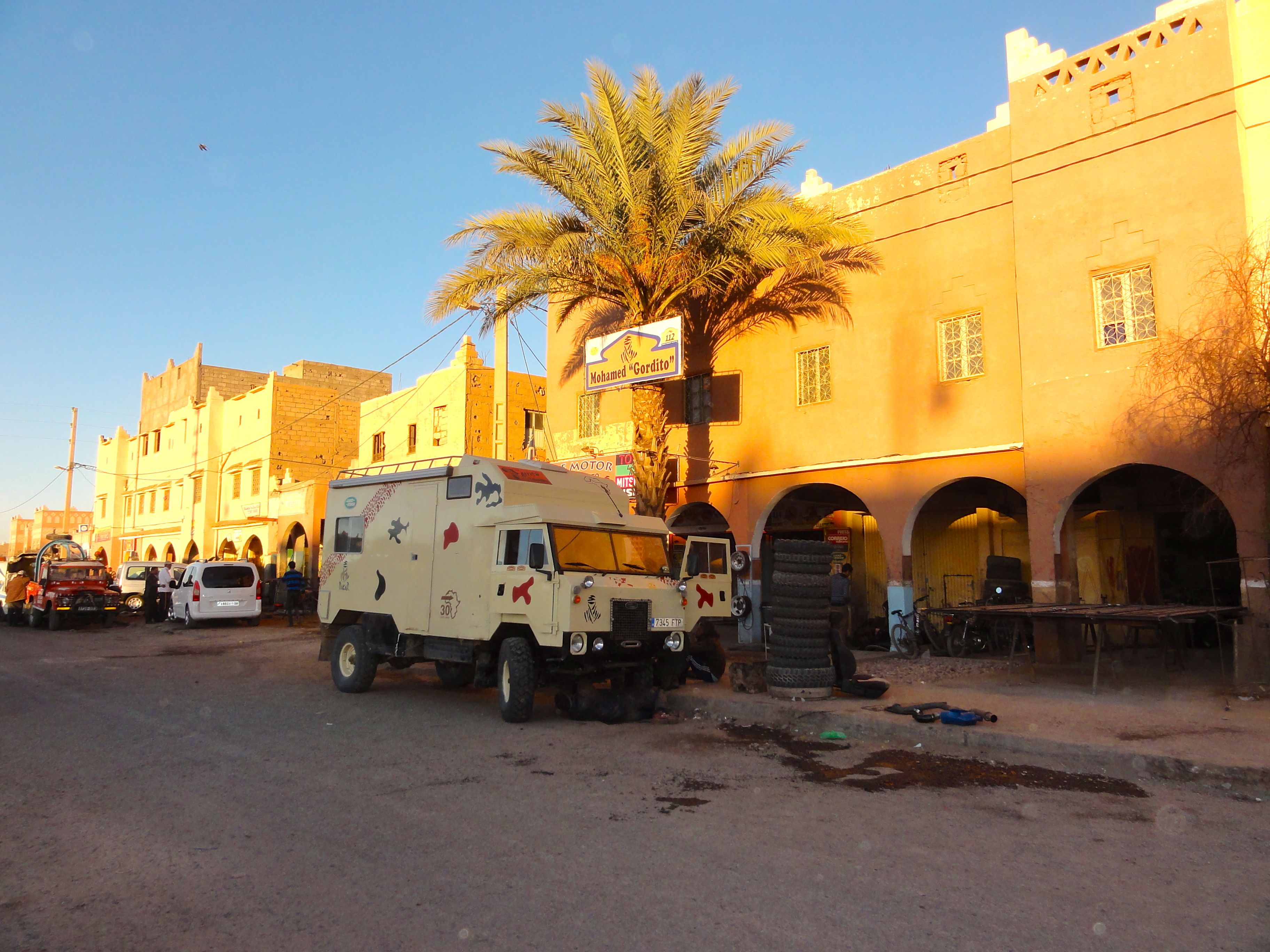We arrived in Zagora by the wide well-leveled piste through the Tizi-n-Tafilalet. At the entrance to town, we checked into the Hotel Sirocco where we spent the night before heading over to Ali Racing the next morning for a check-over. We hadn’t had any mechanical problems, but we thought it was worth a look after three hard days off-road.