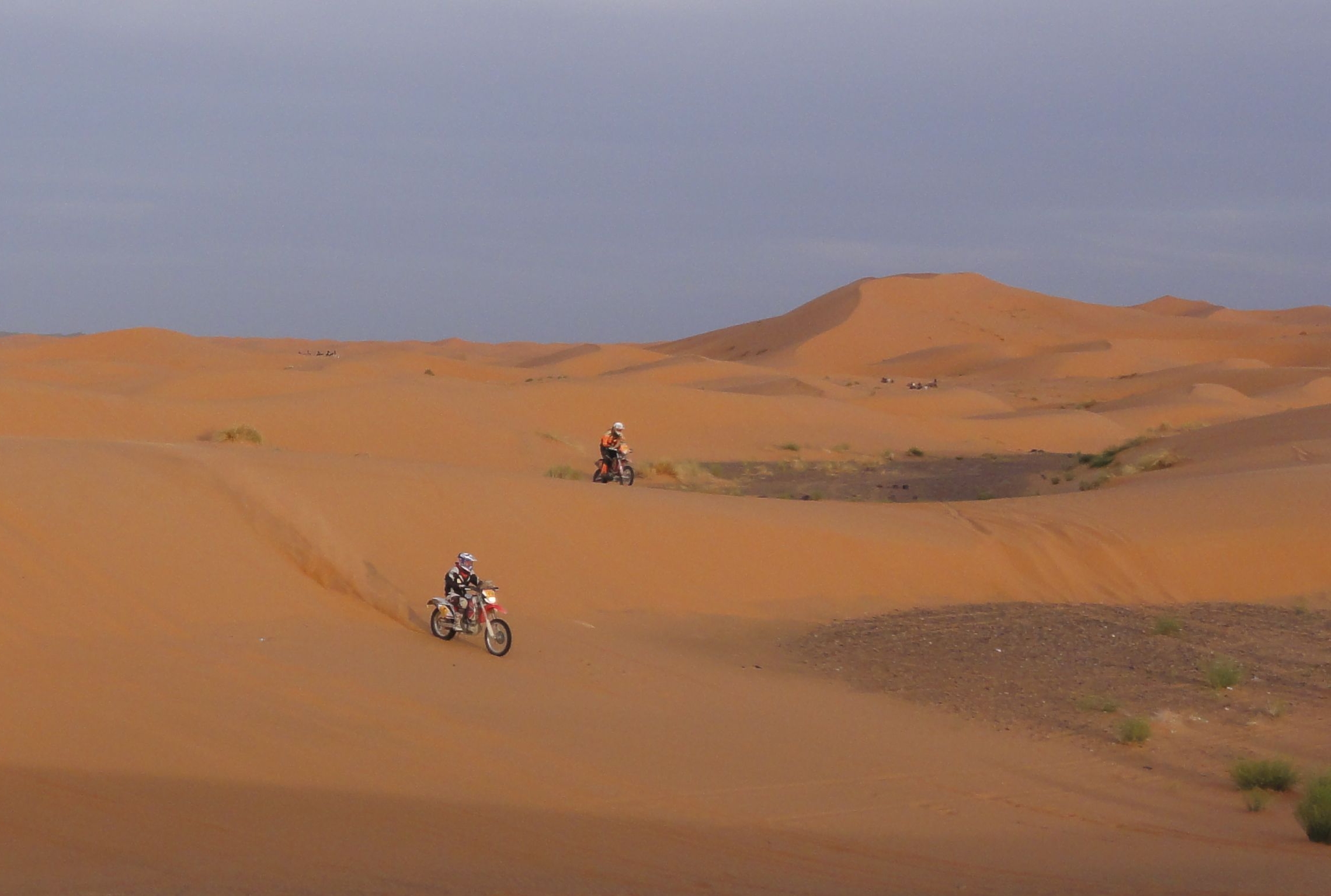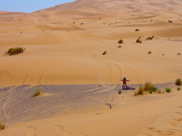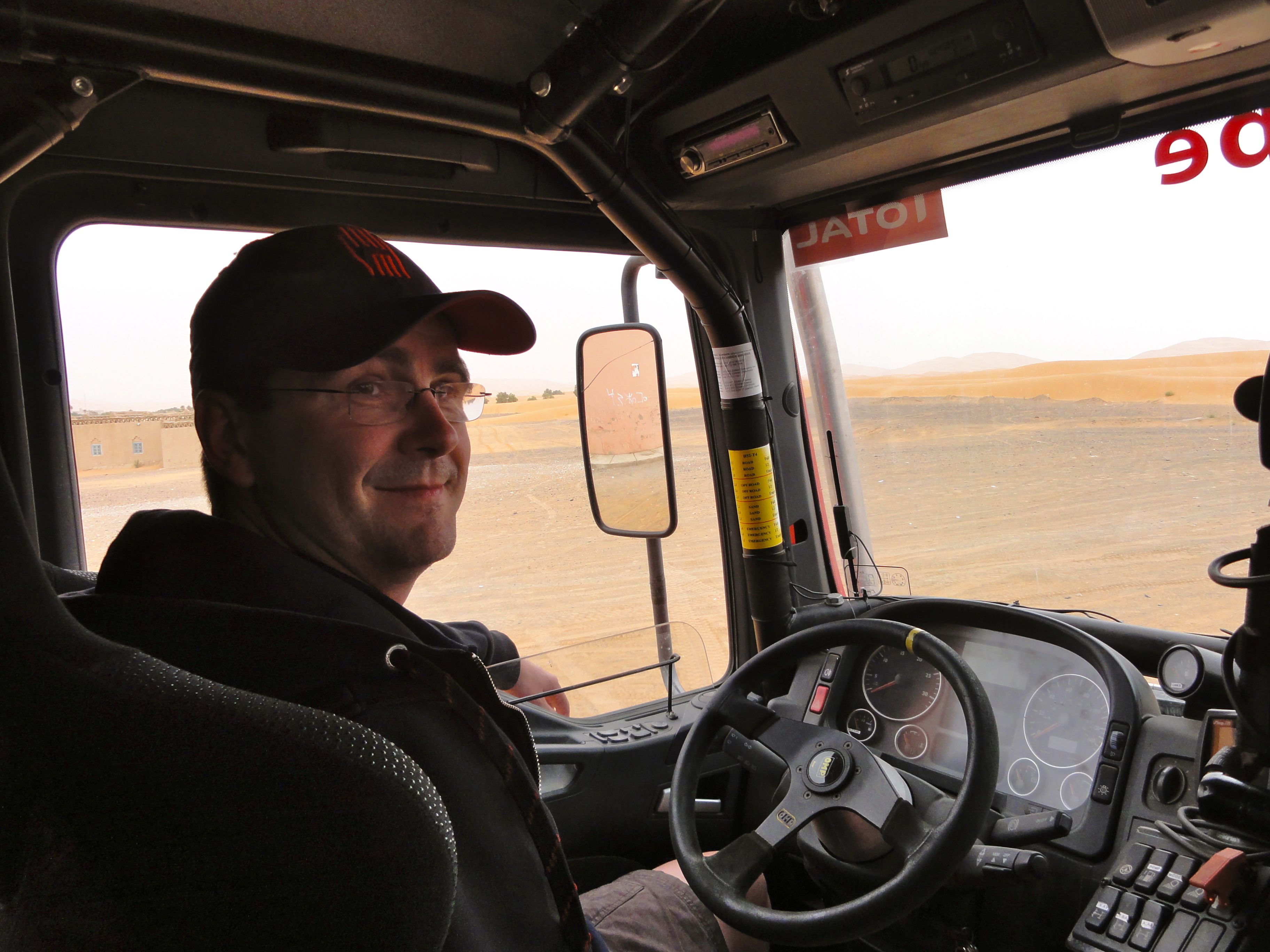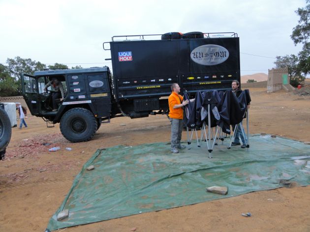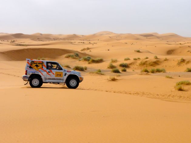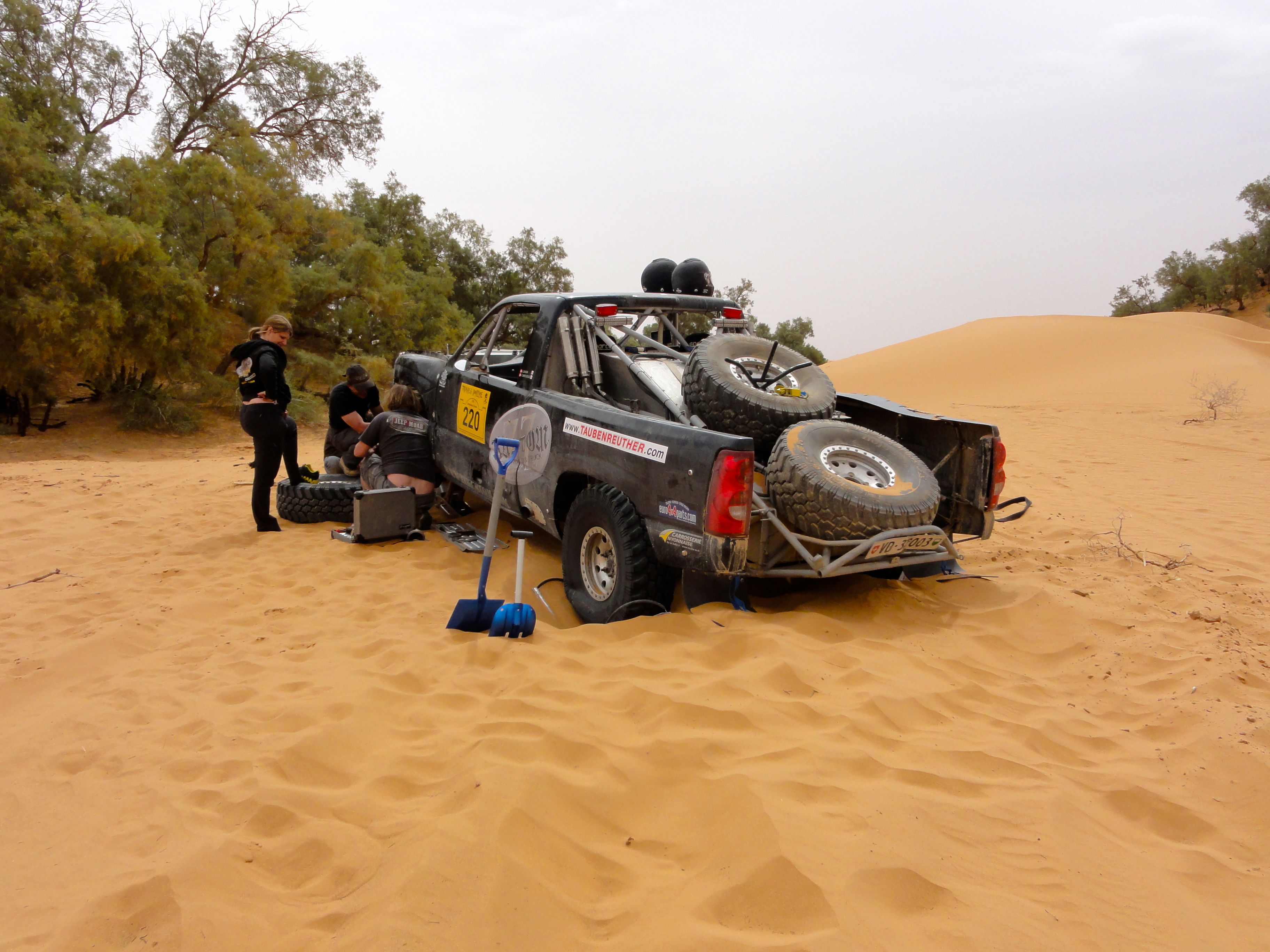 Ahead lay four stages and 16 checkpoints over 200-250km of dunes in the Erg Chebi, the exact distance depending on how the drivers chose to navigate the dunes. At the briefing the evening before, Rainer had said that very few of the participants would master all the stages, and that some drivers might get stuck and have to sleep overnight in the dunes if they couldn’t be helped out in time. “You should prepare for this,” he said. Florian and Yvan seemed worried when we recounted this advice at the dinner table, but they looked relaxed and confident at the starting line.