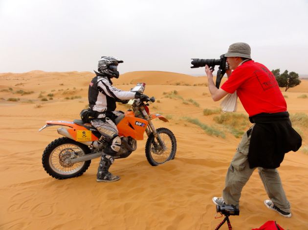 The photographers were also waiting at the top of a dune to film the race as it got underway.